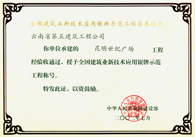 昆明市第一人民醫(yī)院外科住院大樓—2005年度“AAA級安全文明標(biāo)準(zhǔn)化誠信工地”
